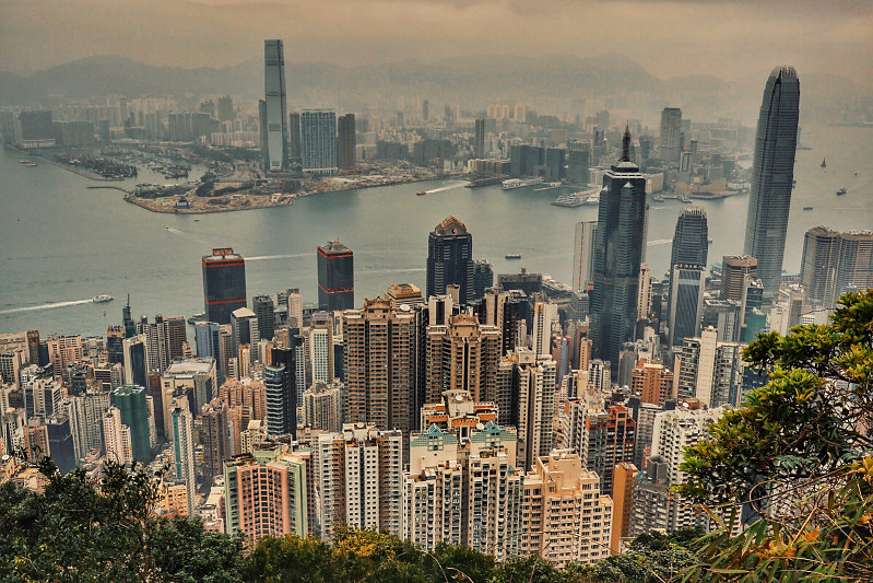 Skyline Hong Kong vom Peak Track aus